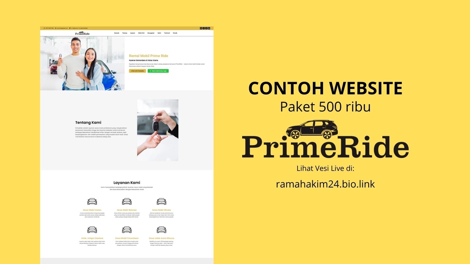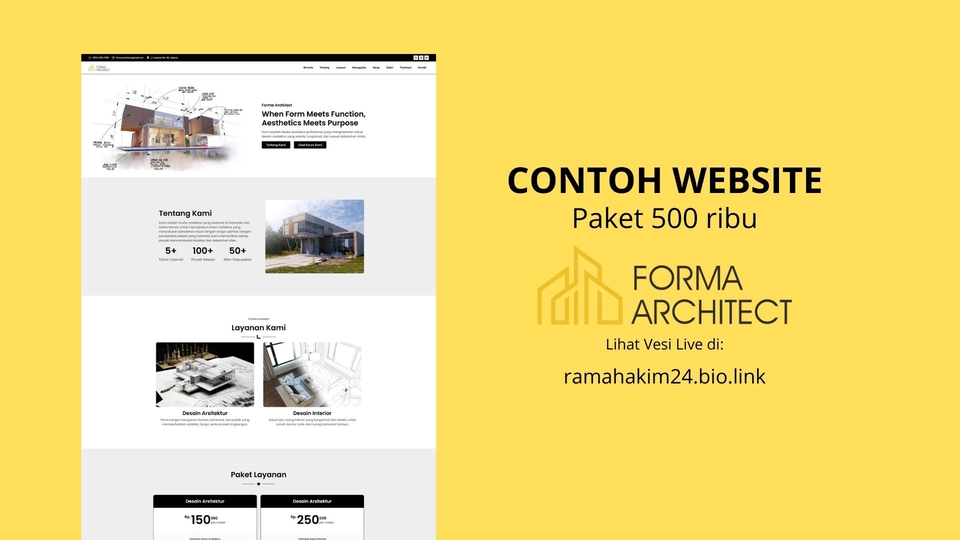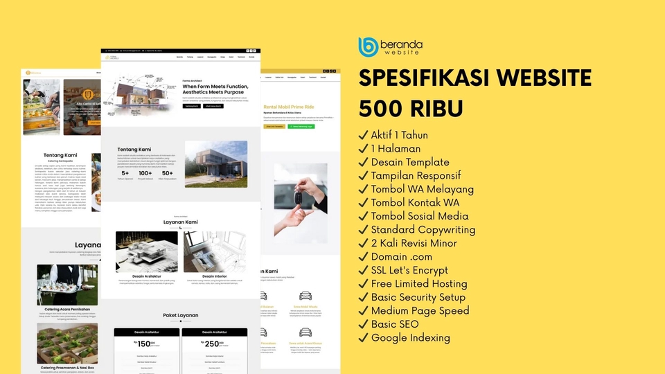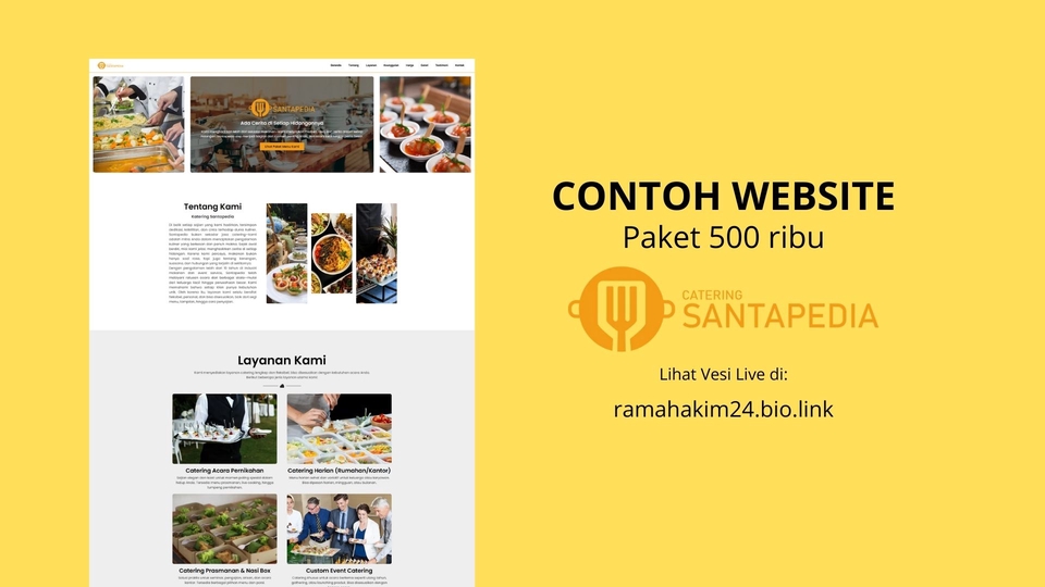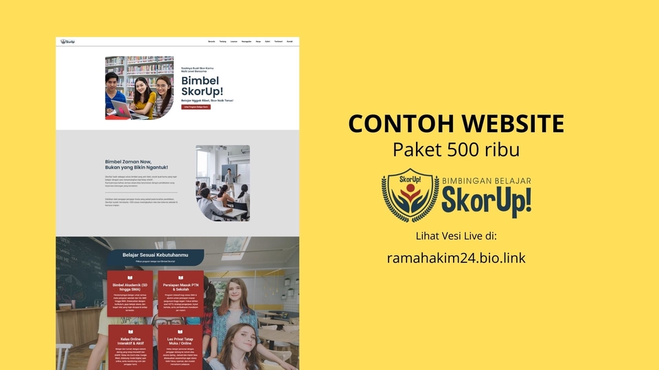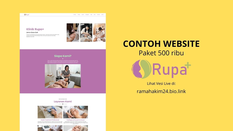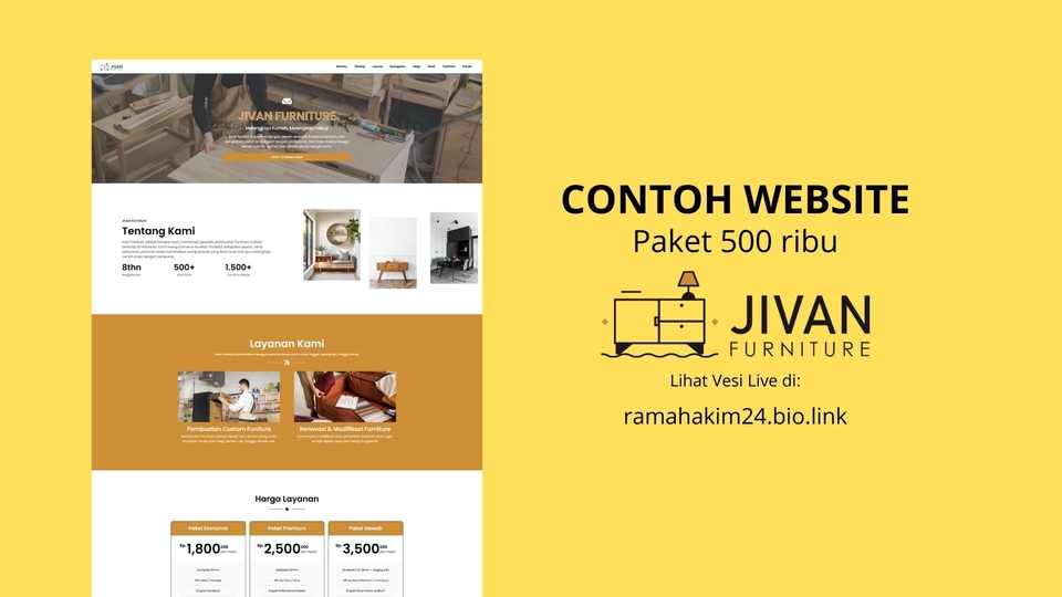 Website murah satu halaman hanya 500 ribu rupiah*. ✔ Bukan cuma desain, website siap live ✔ Tampilan website keren & profesional ✔ Sudah termasuk domain .com ✔ Free limited hosting ✔ Aktif 1 tahun *berlaku biaya perpanjangan 500 ribu rupiah / tahun berikutnya. Yang Anda dapatkan dengan paket website 500 ribu: ✔ Aktif 1 Tahun ✔ 1 Halaman ✔ Desain Template ✔ Tampilan Responsif ✔ Tombol WA Melayang ✔ Tombol Kontak WA ✔ Tombol Sosial Media ✔ Standard Copywriting ✔ 2 Kali Revisi Minor ✔ Domain .com ✔ SSL Let's Encrypt ✔ Free Limited Hosting ✔ Basic Security Setup ✔ Medium Page Speed ✔ Basic SEO ✔ Google Indexing Lihat contoh website harga 500 ribu rupiah di: ramahakim24.bio.link