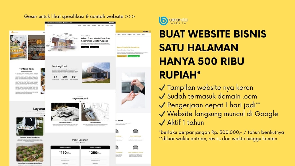 - • 1 buah website 1 halaman dengan masa aktif 1 tahun
