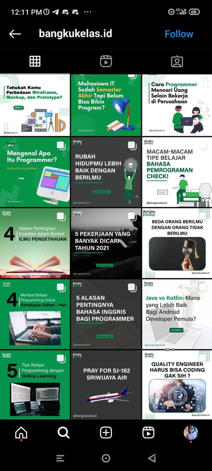 Rp99,0 rb1. Create Content Ideas and Copy Writing 2. Create Caption and hastag relevant 3. Design Feed Instagram 4. Report 5. Raw file (additional, 25k/file)