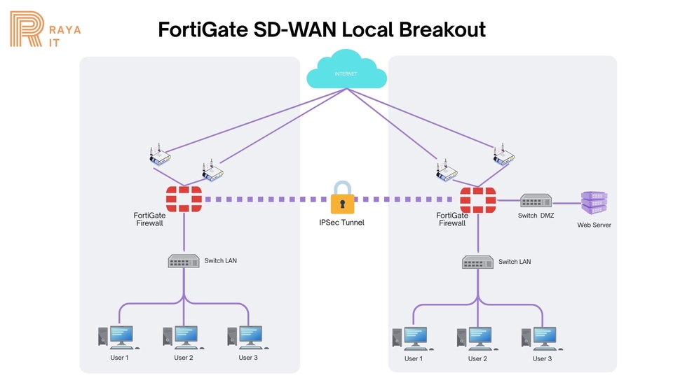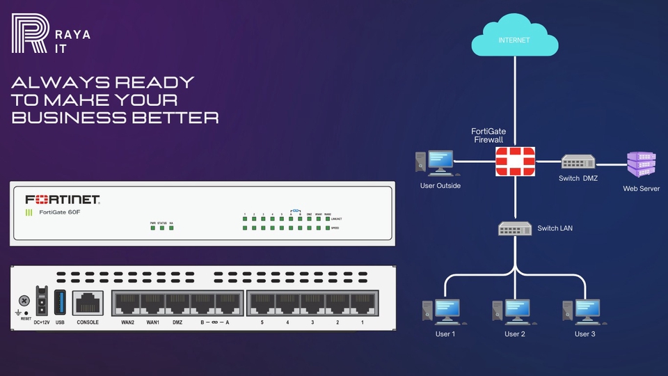 FortiGate adalah Next-Generation Firewall (NGFW) yang mampu melindungi Jaringan komputer terhadap serangan siber. Selain itu FortiGate juga memiliki fitur untuk pembagian jalur line internet secara pintar sehingga memungkinkan jaringan anda menjadi High Availability. Fitur lainnya juga FortiGate bisa digunakan sebagain VPN site-to-site. Kami berpengalaman dalam melakukan Instalasi FortiGate untuk solusi di kebutuhan anda. Sebelum memulai proyek, kami selalu mengedepankan kebutuhan client dengan melakukan sesi hearing secara free, yang bertujuan untuk mendapatkan kebutuhan client sehingga kami dapat memberikan solusi yang tepat.