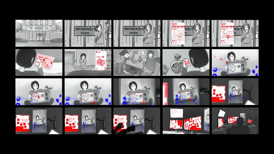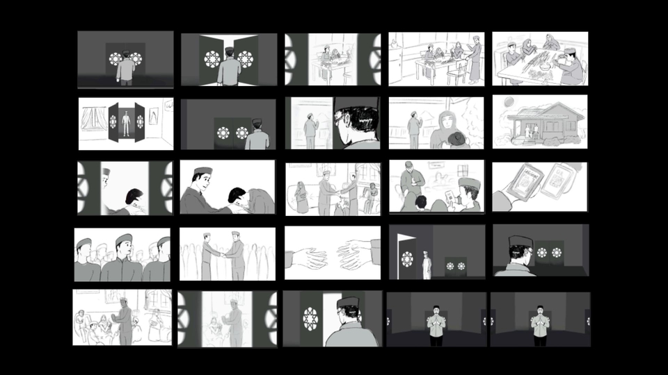 - • Animatic Sederhana: Panel storyboard yang disusun menjadi video