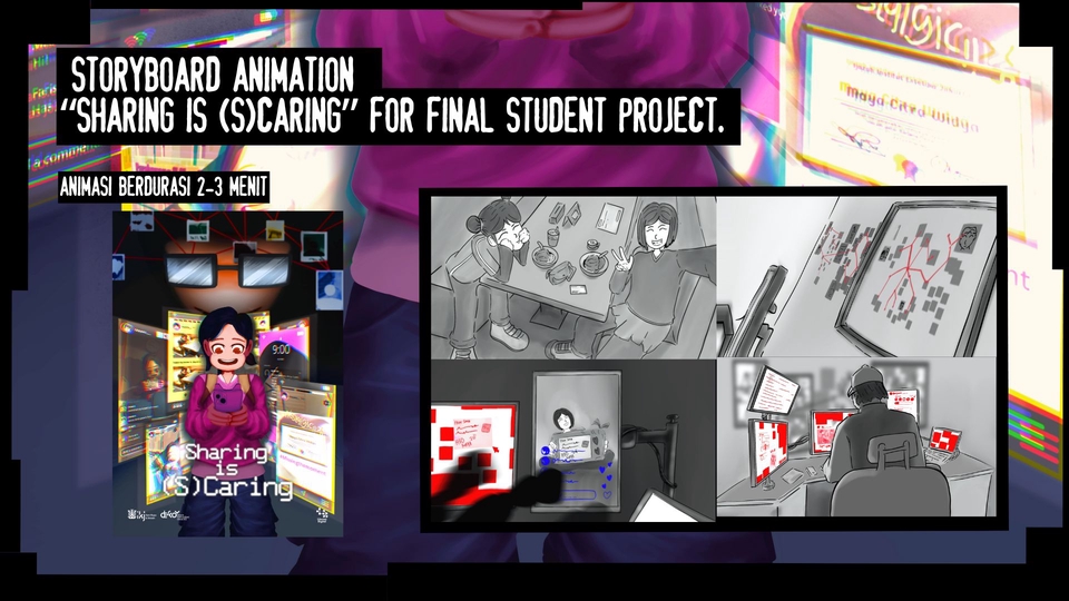 Anda punya naskah brilian tapi kesulitan memvisualisasikannya? Anda butuh presentasi visual yang kuat untuk meyakinkan klien atau tim produksi? Saya di sini untuk membantu! Sebagai seorang storyboard artist berpengalaman, saya akan membuat storyboard yang bersih, dinamis, dan mudah dibaca yang akan menjadi panduan visual untuk proyek Anda. Apa yang Akan Anda Dapatkan dari Layanan Ini: Storyboard Berkualitas Tinggi: Panel-panel yang digambar secara digital dengan detail yang jelas. Fokus pada Penceritaan: Setiap shot akan dirancang untuk memaksimalkan dampak cerita dan emosi. Detail Sinematik: Termasuk arahan kamera (misal: pan, zoom, close-up), pergerakan karakter, dan catatan penting lainnya. Komunikasi Cepat: Saya akan selalu memberikan update dan siap menerima masukan Anda selama proses berlangsung. File dalam Format yang Anda Butuhkan: PNG, JPG, atau PDF berlapis. Proses Kerja Saya: Diskusi: Anda kirimkan naskah, deskripsi adegan, atau referensi visual. Sketsa Kasar (Thumbnails): Saya akan membuat sketsa awal untuk mendapatkan persetujuan mengenai komposisi dan alur. Detailing & Clean-Up: Setelah sketsa disetujui, saya akan mengerjakan versi final yang lebih rapi. Revisi: Anda mendapatkan [jumlah] kali kesempatan revisi. Pengiriman Final: Anda menerima file storyboard final. Silakan hubungi saya sebelum memesan untuk memastikan saya adalah orang yang tepat untuk proyek Anda. Mari kita ciptakan sesuatu yang luar biasa bersama!