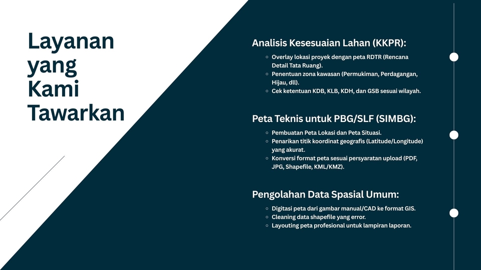 Dalam dunia yang semakin berbasis data, Sistem Informasi Geografis (SIG) menjadi alat yang sangat penting dalam memahami, menganalisis, dan menyajikan informasi berbasis lokasi. Pengolahan data spasial menggunakan GIS akan mempermudah mengasilkan data yang akurat serta memberikan visualisasi yang informatif Dengan pengalaman lebih dari lima tahun dalam bidang pemetaan dan analisis GIS,kami dapat membantu Anda dalam pengolahan data spasial untuk berbagai kebutuhan seperti perencanaan tata ruang, penelitian, mitigasi bencana, dan lain sebagainya. Perangkat lunak yang digunakan adalah ArcGIS dan QGIS untuk memastikan hasil yang berkualitas, akurat, dan sesuai standar pemetaan. Layanan Desain Peta Digital meliputi: ✅ Digitasi dan Pengolahan Data GIS - Digitasi bangunan - Digitasi penggunaan lahan (layout sederhana) - Pembuatan peta batas administrasi ✅ Analisis dan Pemetaan Tematik - Peta kesesuaian lahan - Peta rawan banjir - Peta Rencana Tata Ruang Wilayah (RTRW) ✅ Proses GIS Lainnya - Konversi dan pengolahan data spasial - Layout peta sesuai standar BIG (Badan Informasi Geospasial) - Analisis spasial dan geoprocessing Langkah Pekerjaan 1. Diskusi dan konsultasi awal 2. Mengolah data yang sudah diberikan oleh klien 3. Menyusun layout 4. Konversi format sesuai kesepakatan dengan klien 5. Revisi dan finalisasi
