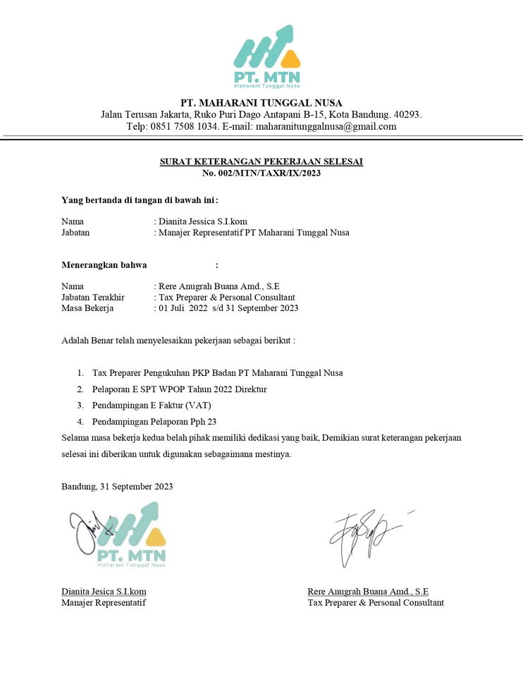 As a seasoned tax expert with a focus on Value-Added Tax (VAT) compliance, I bring a wealth of experience to help businesses navigate the complex landscape of taxation. Over 8 years in the field, I have successfully supported clients in optimizing their tax strategies, ensuring adherence to regulations, and maximizing financial efficiency. Langkah Pekerjaan 1. Open Discuss - Pengarahan Paket Produk sesuai case dan kebutuhan perpajakan 2. Process Pengerjaan sesuai timestamp pekerjaan