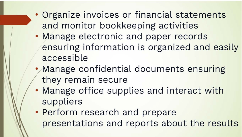 Experienced executive secretary who is ready for new challenge as a virtual personal assistant. I'm familiar with all kind of secretary or personal assistant job tasks and responsibilities including office administration, filling, preparing documents, travel arrangement and many more. You may contact me for more details. Langkah Pekerjaan 1. Discussing job desk 2. Monthly payment