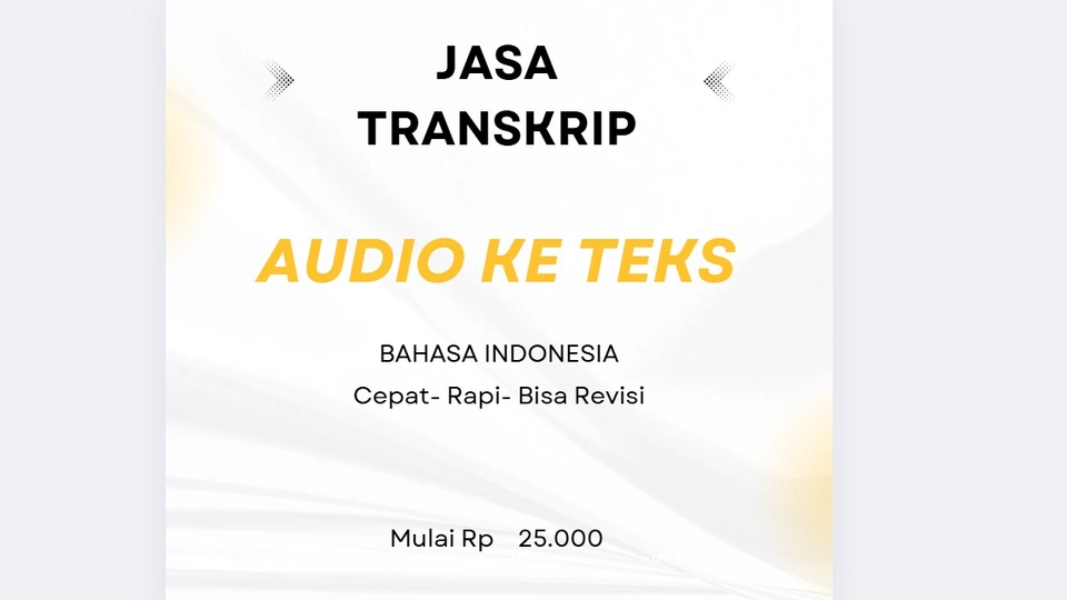 Saya mahasiswa yang teliti dan rapi dalam mengetik. Menerima jasa mengetik transkripsi audio ke teks bahasa Indonesia. Siap mengerjakan tugas kecil, cepat, dan bisa revisi