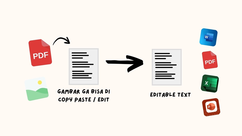 saya akan membantu anda untuk mengubah foto tulisan menjadi file tulisan berbentuk pdf ataupun words. jika anda kesulitan karena pdf tidak bisa di copas ataupun foto yang ingin anda jadikan tulisan. Langkah Pekerjaan 1. memeriksa file 2. merubah menjadi text 3. memeriksa typo / kesalahan penulisan 4. cek sekali lagi 5. beres :)