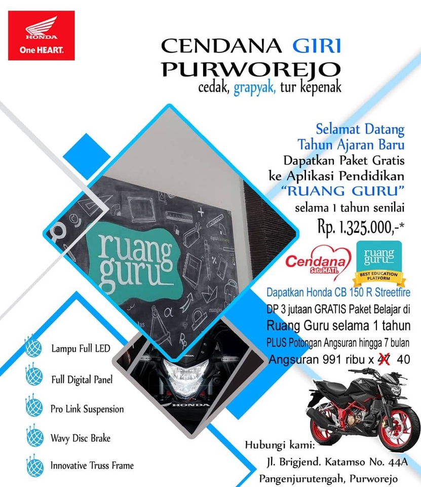 Hai, saya Rian, 18 tahun berpengalaman dalam marketing penjualan retail sepeda motor, F&B dan di perbankan. Menghasilkan ratusan karya brosur dan lainnya membuat tercapainya target perusahaan dan menjadi : 1. Credit Section Head FIF Group : 2007-2010 2. Unit Manager PT PNM Ulamm Persero (BUMN) : 2010-2012 3. Branch Manager Dealer Honda Sepeda Motor : 2012-2022 4. Area Sales Manager F&B : 2022-2025