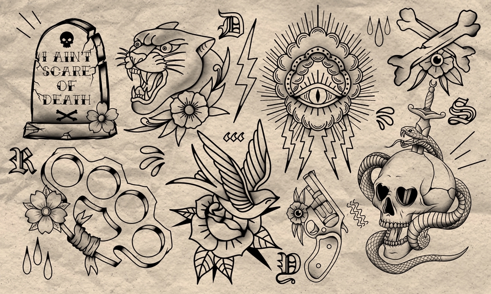 Desain tattoo tradisional atau oldschool yang menarik dan cepat