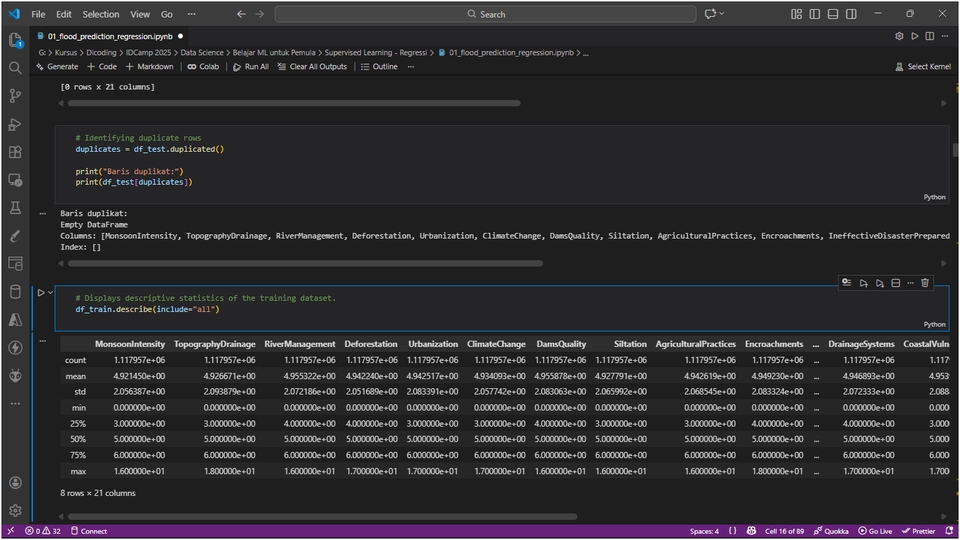 - • Notebook Python (Jupyter) berisi data cleaning & EDA