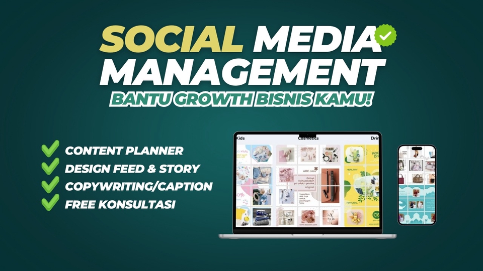 Rp650,0 rb- Content Planner selama 7 hari - 6 Desain Gambar Feed 1080x1080px HD - 6 Desain Gambar Story 1080x1920px HD - Termasuk Copywriting Caption & Hashtag - Revisi 3x pergambar - Desain sudah sesuai target market - Bebas konsultasi selama 7 hari