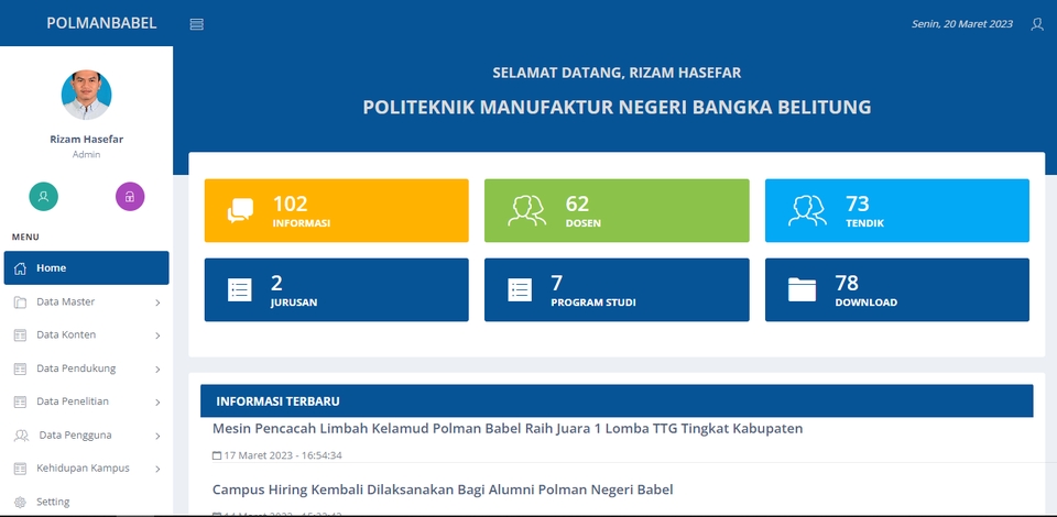 Perkenalkan nama saya Rizam Hasefar, Saya Lulusan S1 Sistem Informasi, Perkerjaan saya sehari-hari sebagai Web Developer. Saya senang bisa membantu pekerjaan anda.