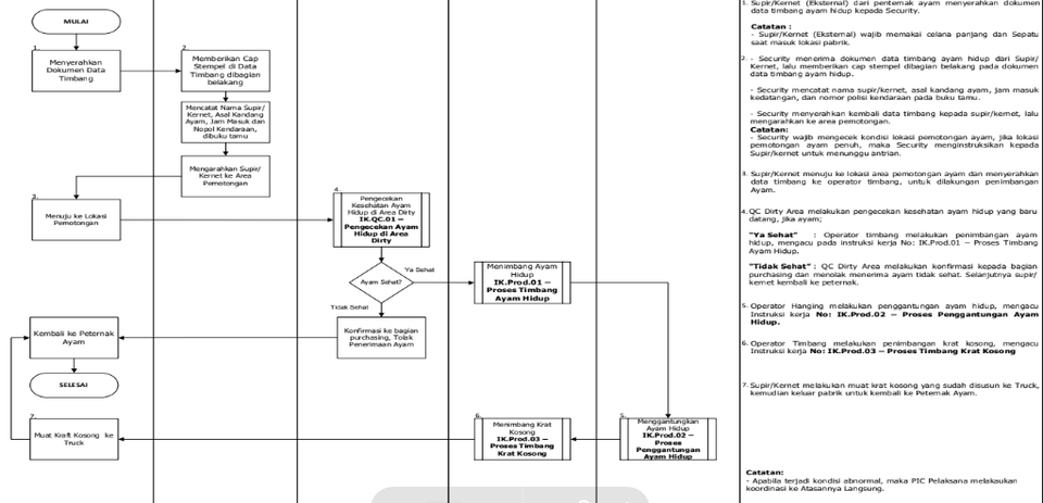Flowchart Proses Produksi Potong Ayam di Unit Usaha Rumah Potong Ayam (RPA)