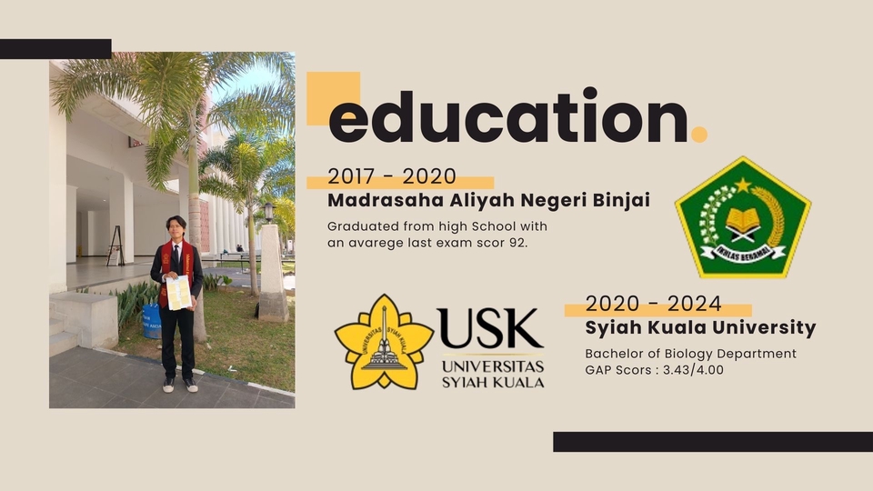 Saya merupakan freshgraduate from Syiah Kuala University dan jurusan saya merupakan Biologi, dan dalam jurusan saya saya seringkali membuat sebuah essay, report, analisis jurnal dan lain sebagainya sehingga hal tersebut yang membantu saya terbiasa akan tulisan-tulisan sehingga membuat saya menjadi pribadi yang detail, dimana saya harus mengikuti sesuai dengan kaidah Bahasa yang baik dan Panduan yang sesuai. Saya juga seringkali dilibatkan dalam membantu pengecekan penulisan baik itu report, essay bahkan tugas akhir sehingga mereka mendapatkan tulisan yang lebih baik dari yang sebelumnya. Langkah Pekerjaan 1. Menganalisis penulisan pelanggan 2. Berdiskusi dengan pelanggan bagaimana prosedur/panduan penulisan (biasa pada report atau sejenisnya) 3. Melakukan Pengerjaan ketika sudah mendapat hasil dari diskusi sebelumnya 4. Melakukan koreksi oleh pelanggan dan akan dilakukan revisi sesuai dengan arahan custumer (Revisi maks: 4x) 5. Ketika revisi selesai maka hasil penulisan diberikan atau dikembalikan ke pelanggan