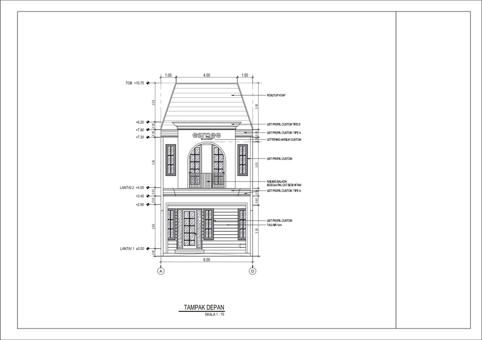Rp200,0 rbGambar terdiri dari 1. Denah 2. Tampak 3. Potongan Harga menyesuaikan dengan desain dan luasan bangunan. bisa negosiasi. kirim pesan untuk lebih detail. File yang didapatkan: - File .dwg - File .pdf * Revisi 3x