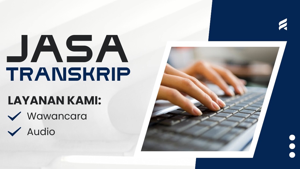 Jasa Transkrip Audio, Rekaman, atau Wawancara adalah layanan yang ditawarkan untuk mentranskripsi atau mengubah rekaman suara menjadi teks tertulis. Jasa ini menerima rekaman audio dalam berbagai format, seperti file MP3, WAV, atau format lainnya, dan kemudian melakukan transkripsi teks dari rekaman tersebut. Ini bisa berupa wawancara, ceramah, diskusi panel, atau materi audio lainnya. 1. Keakuratan transkripsi sangat penting dalam jasa ini. 2. Penyuntingan dan Koreksi 3. Keamanan dan Kerahasiaan 4. Kecepatan Pengerjaan: 1x24 jam menyesuaikan lama audio 5. Harga: Biaya untuk jasa ini dapat bervariasi tergantung pada kompleksitas rekaman Langkah Pekerjaan 1. Kirimkan file audio 2. Pengerjaan