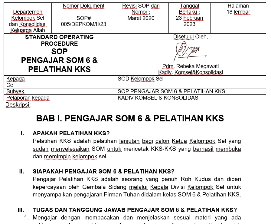 Menyediakan Jasa Pembuatan SOP yang dirancang untuk meningkatkan efisiensi dan konsistensi dalam operasional bisnis. Meningkatkan efisiensi dan produkstivitas karyawan. Meminimlakan kesalahan dan inkonsistensi dalam operasional. Memudahkan pelatihan karyawan baru. Meningkatkan kepatuhan terhadap regulasi dan kebijakan perusahaan Langkah Pekerjaan 1. Jadwalkan Konsultasi Analisa Kebutuhan untuk memahami tujuan dan ruang lingklup SOP yang dibutuhkan. Mengidentifikasikan departemen yang memerlukan. Melakukan wawancara dengan pemilik atau manajer untuk memahami proses kerja yang ada. Dilakukan bisa secara virtual zoom 2. Pengumpulan Data dengan observasi langsung terhadap proses kerja pada hari SAbtu, emngadakan diskusi langsung dan menumpulkan dokumen terkait seperti kebijakan perusahaan, regulasi dan SOP lama 3. Penyusunan draft SOP meliputi tujuan, ruang lingkip, definisi istilah, Peran Tanggungjawab. Prosedur. Flowchart (tergantung paketan) 4. Review dan Revisi. mengirimkan draft SOP kepada pihak terkait. Mengadakan pertemuan zoom untuk diskusi. Melakukan ujicoba selama 3 hari untuk memastikan keefektifannya. 5. Finalisasi dan Persetujuan 6. Diluar paket basic akan dijadwalkan untuk sosisalisasi dan implementasi