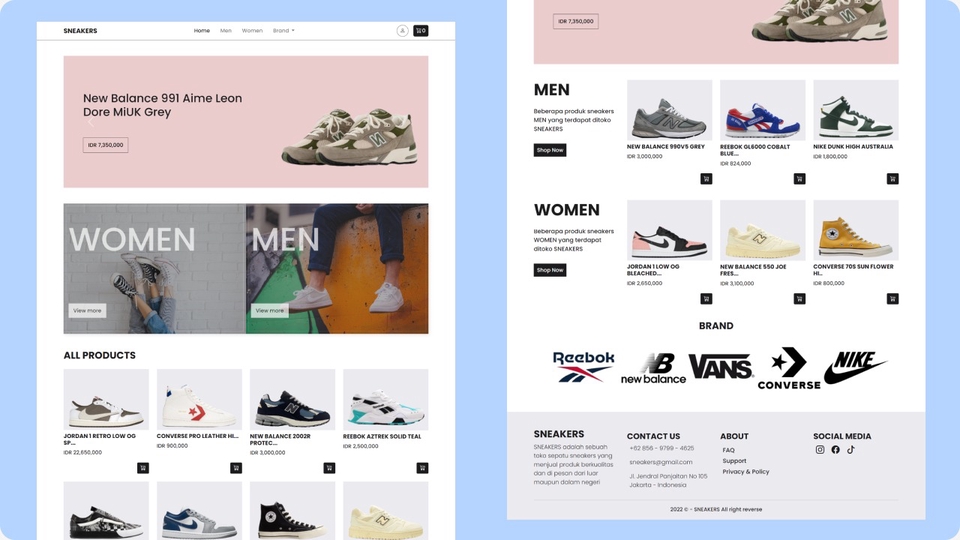 undergrad dari fakultas Teknik Informatika, saya mempelajari web programming sejak dari 2021, kemampuan saya saat ini HTML, CSS, Java Sacript, Bootstrap, Tailwind CSS. Landing page website e-commerce sepatu ini saya buat dengan menggunakan tools Figma, visual studio code, dengan bahasa pemrograman html, css, javascript, bootstrap, website ini sudah reponsif dan design yang modern Langkah Pekerjaan 1. Membuat Design Website 2. Proses Setup dan mencari assets 3. Proses Develop website 4. User testing