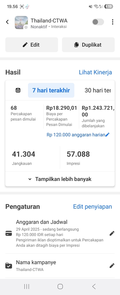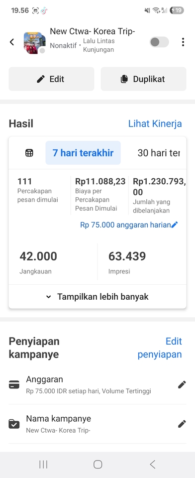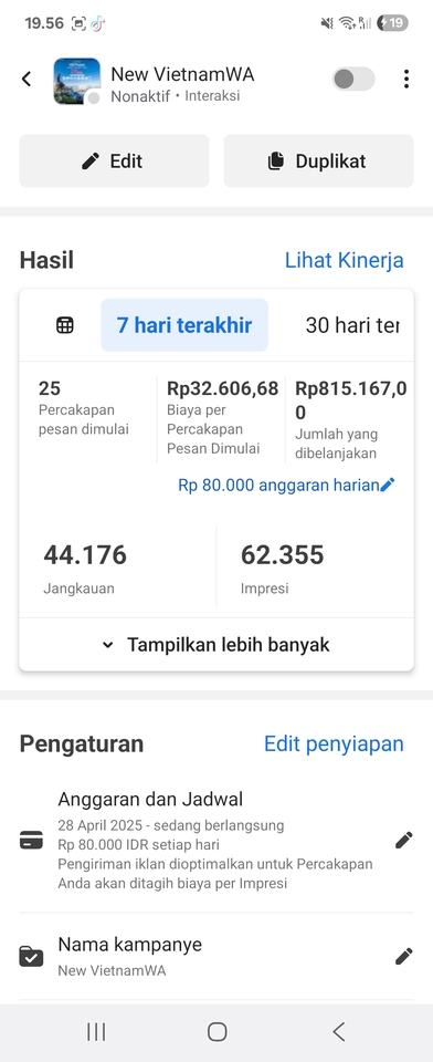 Rp1,2 jt4 Campaign (misal: Traffic + Conversion) 2 Set copywriting & desain iklan Optimasi dan monitoring harian 7 hari Laporan performa (bisa di sesuaikan)