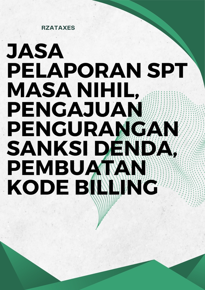 Rp1,0 jtFile yang kami berikan : 1. Penyusunan draft SPT Tahunan (Dlm bentuk Excel) 2. Pembuatan SSP 3. Pembuatan SPT Pajak 4. Bukti Lapor SPT Pajak (BPE) 5. Pembuatan Kode Billing (Jika status kurang bayar) Note : 1. Harga bisa saja berubah tergantung kesulitan data. 2. Revisi menyesuaikan kebutuhan klien