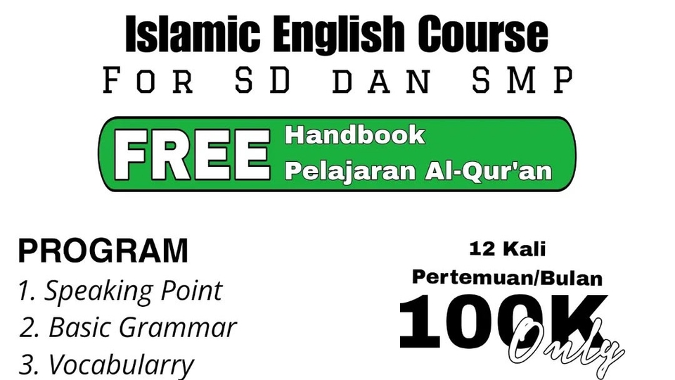 Saya menawarkan kursus Bahasa Arab dan Bahasa Inggris untuk pemula hingga tingkat menengah dengan metode praktis dan interaktif. Bahasa Arab: fokus pada percakapan, membaca teks dasar-menengah, dan memahami Al-Qur’an. Bahasa Inggris: fokus pada grammar dasar, percakapan sehari-hari, serta penulisan sederhana. 🎯 Keunggulan: Lulusan S1 Ilmu al-Qur’an & Tafsir, dengan pengalaman mendalami Bahasa Arab di pesantren selama 7 tahun. Pernah menempuh kursus intensif Bahasa Inggris (Gaza English Course). Metode belajar fleksibel: bisa privat 1-on-1 atau kelompok kecil, online maupun offline. Materi disesuaikan dengan kebutuhan (akademik, religi, atau komunikasi sehari-hari).