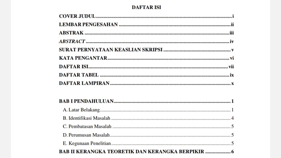 Rp40,0 rb-Menyusun Daftar Isi -Menyusun Daftar Pustaka -Merapikan format (Nomor halaman, footnote, typo, dsb) -Max. 15