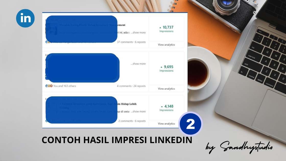 Rp750,0 rbPaket Ini Termasuk: 1. 15 post copywriting caption (foto, carousel) 2. Penjadwalan & publishing LinkedIn (opsional akses admin) 4. Laporan performa bulanan (reach, engagement, insight dasar)