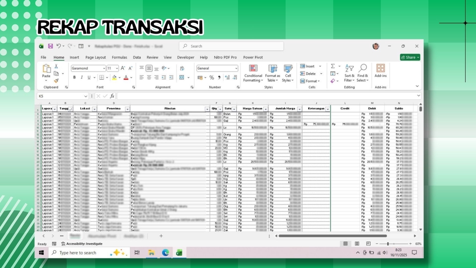 silahkan cek portofolio freelancer bekerja dengan klien di: https://drive.google.com/drive/folders/1SjNhN_6-b-EfllyYTVdrwvFRcNwD29lq?usp=sharing Saya membantu klien menginput dan atau memasukkan data ke microsoft excel, seperti data penjualan, data pembelian, data keluar masuk barang dan data lainnya Proses yang bisa saya lakukan : - Sumber data dari client bisa berupa foto (JPG/PNG) / PDF / Word dan sebagainya - Total data yang bisa di input sesuai paket jasa yang di beli dan di pesan - Data bisa di jadikan table sesuai keinginan klien - Data bisa di tambah kolom yang terdapat formula - Maksimal kolom tidak lebih dari paket yang di beli Langkah Pekerjaan 1. Chat saya terlebih dahulu (Hingga ada response) 2. Diskusi mengenai project (berapa sheet yang di gunakan dan total cell yang akan di input) 3. Klien setuju dan bayar, freelancer langsung bekerja