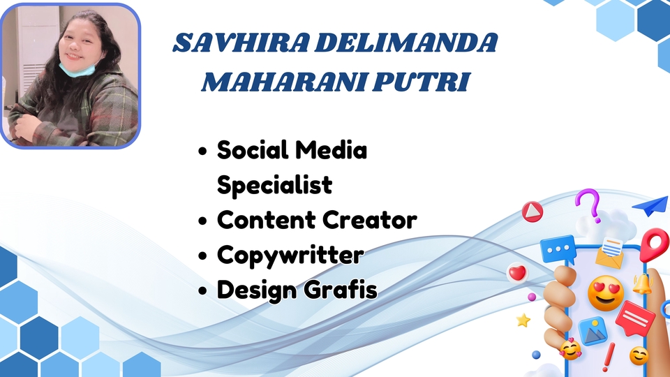 Saya memiliki pengalaman dalam pembuatan konten kreatif (foto, video, copywriting, serta desain visual) yang sesuai tren dan mampu meningkatkan engagement di media sosial. Saya memiliki sertifikat content creator 2025-2028 Saya percaya kemampuan saya dalam menciptakan konten yang kreatif, relevan, dan engaging dapat memberikan kontribusi positif bagi tim di Perusahaan anda..