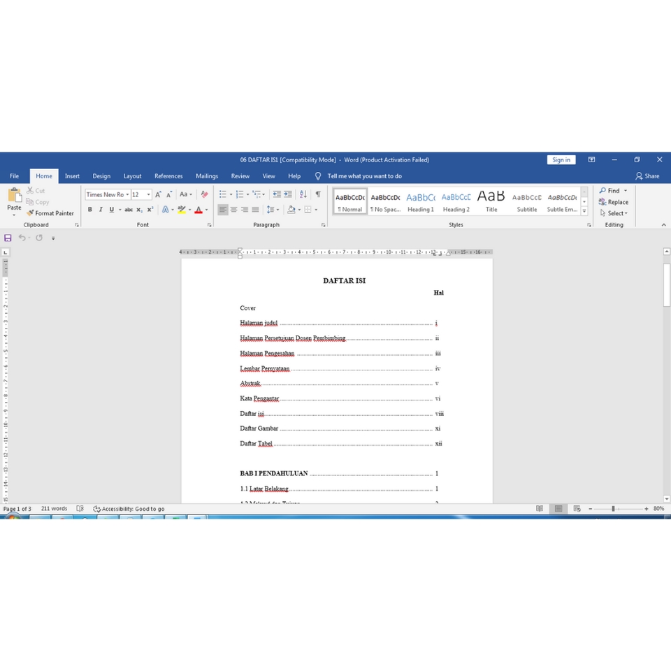 Hai, Pejuang Skripsi. Bingung cara membuat daftar isi, daftar pustaka, dan merapikan halaman dengan benar? Buruan edit di sini. Dijamin rapi, cepat, dan memuaskan! Keterangan: 1. Daftar isi otomatis, 2. Daftar gambar dan daftar tabel, 3. Numbering dengan menggunakan heading, 4. Penulisan sesuai PUEBI (Pedoman Umum Ejan Bahasa Indonesia). Langkah Pekerjaan 1. Klien menjelaskan ketentun skripsi yang diminta (margin, halaman, paragraf, dsb) 2. Kesepakatan deadline 3. Work in progress 4. Menyerahkan hasil sesuai deadline 5. Pekerjaan selesai, Klien memberikan rating dan review