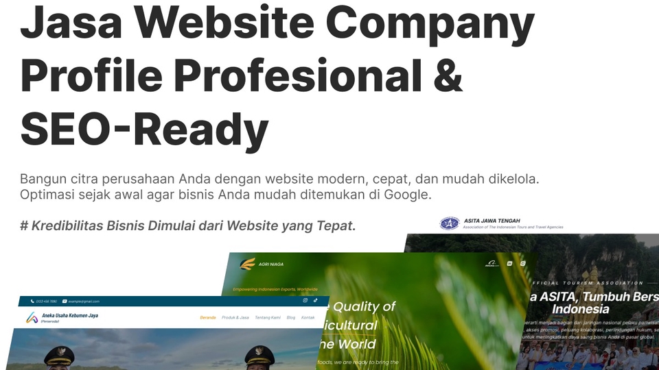 Bangun citra korporasi Anda dengan website profesional yang mempresentasikan kredibilitas bisnis secara maksimal. Kami menyediakan layanan pengembangan website company profile dan landing page berbasis CMS yang stabil, mudah dikelola, serta dioptimasi untuk performa SEO agar mudah ditemukan calon klien potensial di Google. Layanan mencakup: Desain elegan dan sesuai brand guideline perusahaan Struktur SEO-ready (meta tag, heading, dan page speed optimization) CMS modern (Laravel / Headless CMS) Integrasi form kontak, WhatsApp, dan peta lokasi Maintenance ringan & dukungan teknis pasca-launching Mengapa Memilih Kami: Berorientasi pada citra dan kepercayaan perusahaan Fokus pada performa, keamanan, dan skalabilitas Tim berpengalaman di bidang UI/UX dan SEO teknis Tingkatkan kepercayaan pelanggan dan kemudahan akses informasi perusahaan Anda — mulai dari website yang solid, cepat, dan profesional.