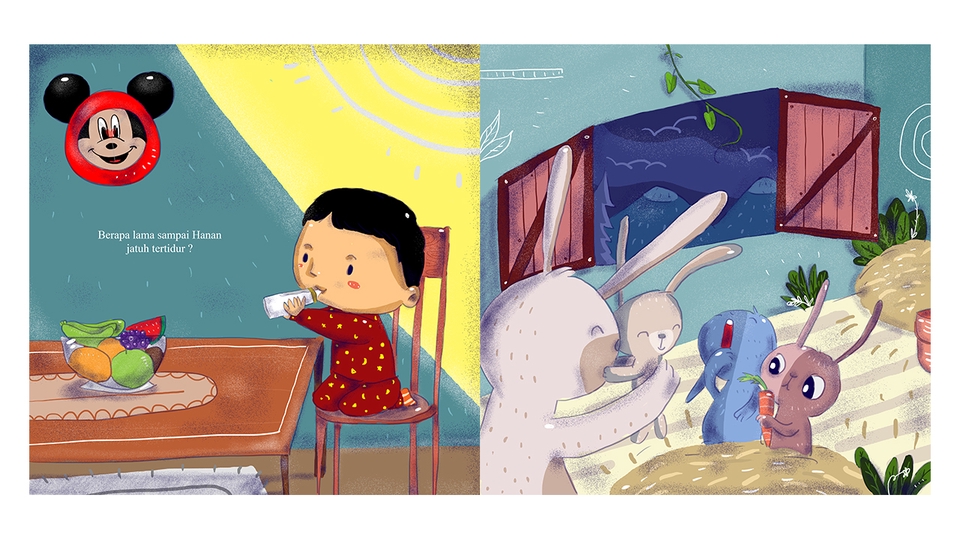 Hi🌻, kamu punya proyek bikin buku cerita atau buku buku yang lain, udah jangan berfikir itu gak masuk akal, mari saya bantu. Kalo dirasa kemahalan kalian bisa mengajukan tawaran untuk paket Satu buku langsung, jadi gak pergambar. Langkah Pekerjaan 1. Kirimkan brief ilustrasi yang diinginkan (Preferensi warna yang mau digunakan, mood mau fun-serius-atau lainnya, sketsa , referensi kalau ada, dan catatan lainnya) 2. saya akan membuat sketsa 3. sketsa dikirim dan menunggu acc dari klien 4. setelah acc sketsa akan diwarna dan finishing