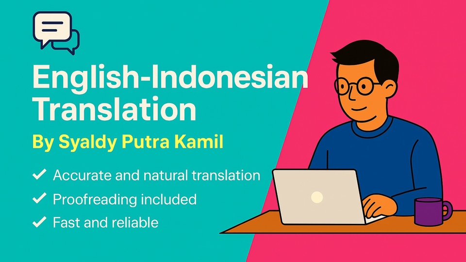 Professional English and Indonesian Translation You Can Trust! Hi, I'm Syaldy, a native Indonesian with over 2 years of experience as an English translator and interpreter. I offer English ↔ Indonesian translation services, including subtitle translation. I deliver accurate, natural, and context-aware translations with fast turnaround and clear communication. Let’s work together to make your message understood across languages!