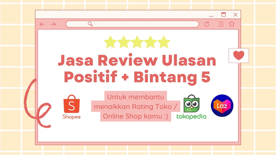 🌟 Dapatkan Review Ulasan Positif Bintang Lima dengan Layanan Kami! 🌟 Apakah Anda membutuhkan ulasan positif dan bintang lima untuk meningkatkan kepercayaan pelanggan dan penjualan di platform Tokopedia, Shopee, GoFood, GrabFood, atau ShopeeFood? Kami siap membantu! Keunggulan Kami: 💲 Biaya Terjangkau: Kami menawarkan biaya terjangkau dan tidak ada biaya tambahan untuk menambahkan isi review, foto, atau video unboxing. (Foto & Video bisa dari Anda) ⏱️ Proses Cepat: Kami menyelesaikan ulasan positif dalam waktu 1x24 jam, membantu Anda mendapatkan hasil cepat. 🔒 Keamanan Terjamin: Kami berkomitmen untuk menjaga keamanan dan kepercayaan. Akun kami adalah akun real yang sering berbelanja di platform ini. 👫 Pilih Gender Akun: Anda dapat memilih apakah ingin ulasan dari akun perempuan atau laki-laki sesuai dengan target pasar Anda. Jika tidak request akan saya gunakan akun gender perempuan. Kami siap membantu Anda membangun reputasi yang baik dan meningkatkan penjualan Anda. Hubungi kami sekarang untuk mendiskusikan kebutuhan Anda! Langkah Pekerjaan 1. Silahkan hubungi kami untuk berdiskusi terlebih dahulu mengenai kebutuhan Anda 2. Informasikan link produk dan link toko 3. Jika ingin menambahkan foto dan video dari Anda, bisa langsung dikirimkan 4. Kami akan mengirimkan Screenshot total biaya checkout dan mengirimkan virtual account pembayaran checkout untuk dibayarkan oleh Anda 5. Mohon kesediaan Anda untuk memproses juga pesanan saya 6. Saat barang/paket sudah tiba saya akan langsung menyelesaikan pesanan dan memberikan ulasan sesuai kesepakatan 7. Kami mengirimkan bukti screenshot ulasan dan Anda akan menyelesaikan pembayaran pada platform fastwork