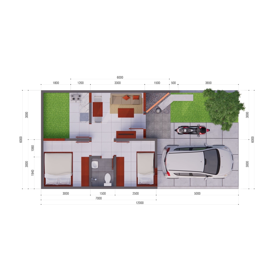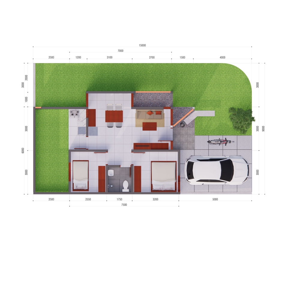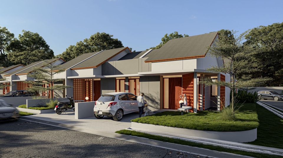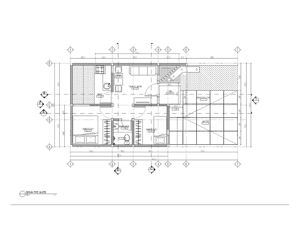 Rp200,0 rbGambar Arsitektur 1. Site plan 2. Denah 3. Tampak 4. Potongan 2 buah (Melintang dan memanjang) 5. Denah material lantai dan dinding 6. Denah rencana kusen + detail kusen 7. Denah plafond 8. Detail - detail