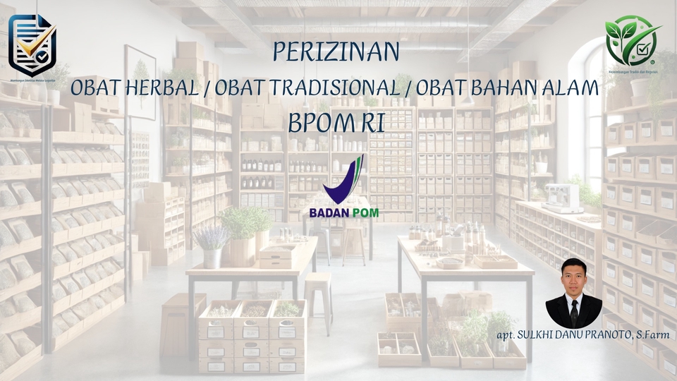 Apoteker dengan pengalaman kerja lebih dari 7 tahun di Industri Obat Herbal / Obat Tradidional / Obat Bahan Alam Langkah Pekerjaan 1. Konsultasi Proses Perizinan dari Pembuatan industri / Pabrik 2. Konsultasi Formula Produk a. Analisys formula apakah sudah sesuai persyaratan BPOM atau belum b. Analisys parameter uji untuk tiap formula maka hasil semua pengujian sesuai kriteria (menghemat biaya pengujian) c. Rekomendadi laboratorium Pengujian dan komposisi setiap formula 3. Registrasi Produk ( Pendampingan samapai Nomor Izin Edar terbit) a. Registrasi Produk Baru b. Registrasi Ulang atau Perpanjangan c. Registrasi Variasi atau Perubahan