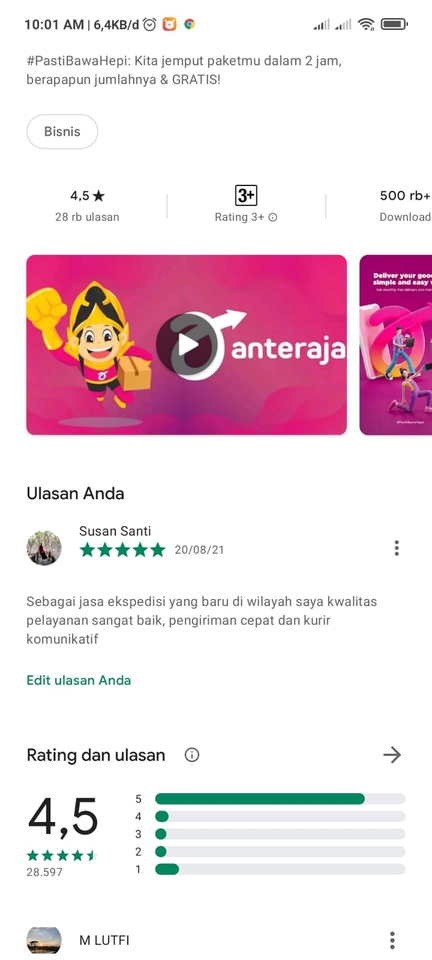 Saya menawarkan jasa review produk dan review aplikasi di playstore pemberian review secara manual dan original bukan BOT. Review bintang 5 kami berikan tanpa dihapus sampai kapanpun