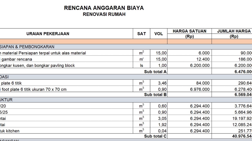 Jasa Membuat Estimasi Biaya Renovasi Rumah / Pembangunan Rumah