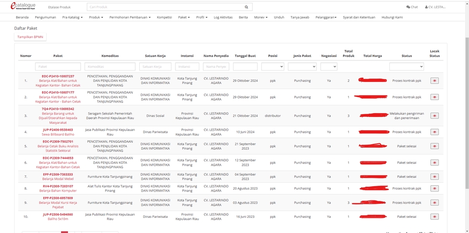 Jasa Pengerjaan Proyek Pengadaan Barang / Jasa di E Catalogue