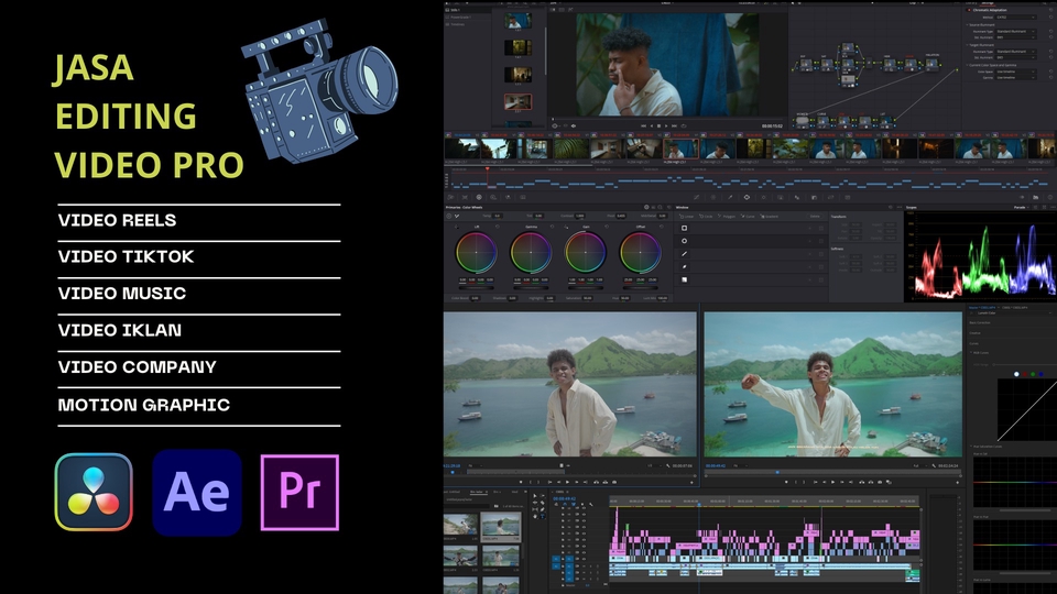 Rp2,0 jt- PRO EDITING - SOFTWARE PREMIERE PRO & - RENDER HD/4K - SEQUENCE BY REQUEST - TEXT - TRANSITION - EFFECT - COLOR IN DAVINCI (PRO) - MOTION GRAPHIC *REVISI HANYA 2X *DURASI MAKSIMAL 3 MENIT