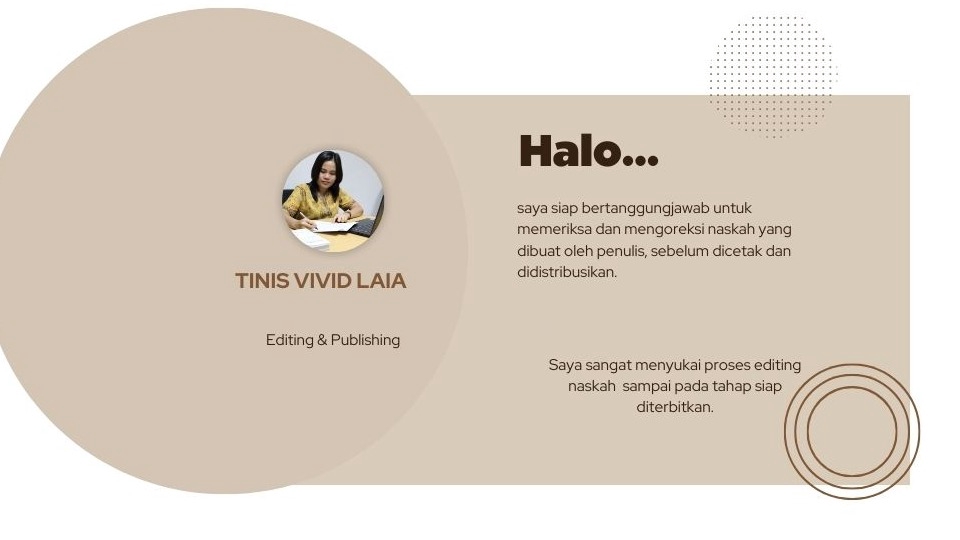 Lulus dari sekolah Tinggi Teologi dan melanjutkan pelayanan pastoral di dunia pelayanan serta melanjutkan karir di bagian proofreading naskah buku yang siap diterbitkan dengan target 10 buku dalam setahun. Langkah Pekerjaan 1. Menerima naskah dengan lengkap 2. Naskah diterima, proofreading siap dilaksanakan sesuai dengan stadar editoral penerbit