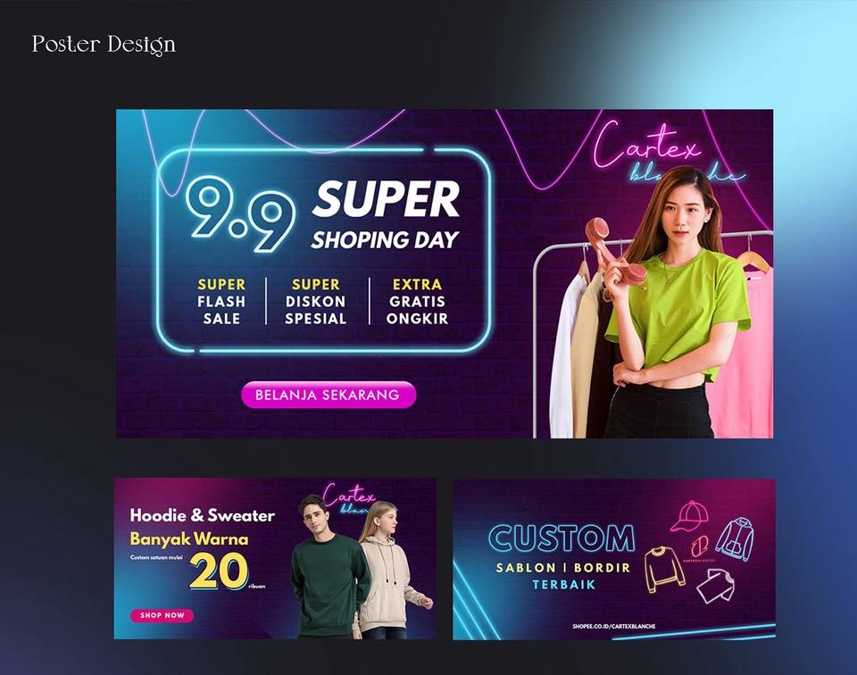 Dalam dunia bisnis, Banner yang menarik merupakan faktor penting untuk kesuksesan. Bisnis tak bisa lepas dari aktivitas promosi. yuk buat banner promosi yang menarik! Layanan kami - Feed Konten Sosial Media - Desain Banner marketplace - Youtube/Fb Cover Langkah Pekerjaan 1. Infokan detail Design 2. Silahkan infokan detai ukuran banner 3. Silahkan infokan referensi design yang kamu mau