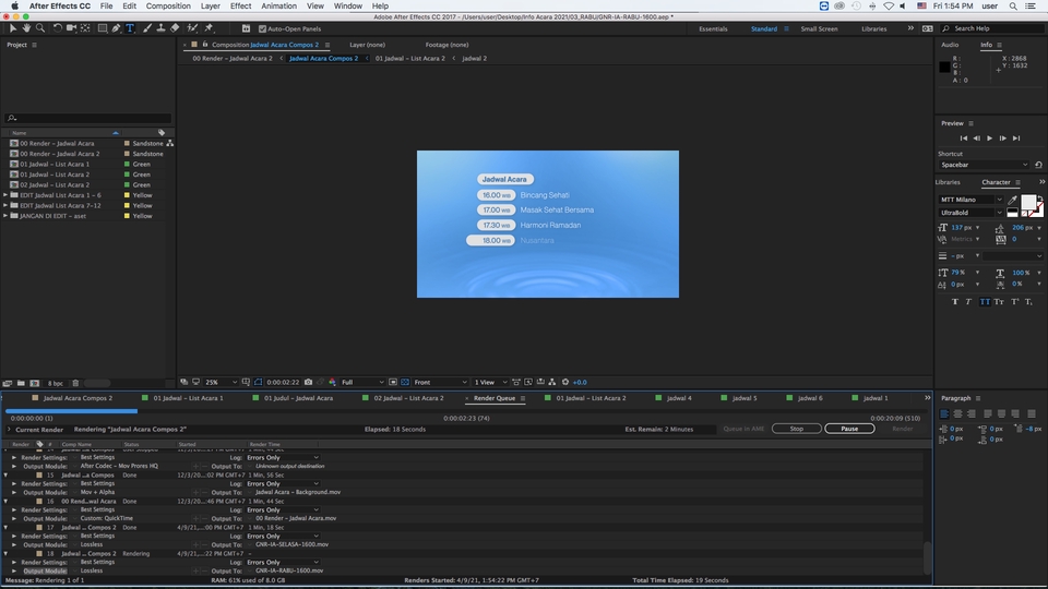 Hallo saya tommy seorang video editor yang sudah pengalaman selama 5 tahun Dapatkan editing dengan kualitas terbaik, dan format video sesuai request kalian Kami dapat merevisi jika di perlukan Kominikasikan terlebih dahulu agar mencapai kesepakatan bersama Langkah Pekerjaan 1. 1. Kirim Materi Edit 2. 2. Tentukan Konsep 3. 3. Editing 4. 4. Export 5. 5. Revisi (Optional)