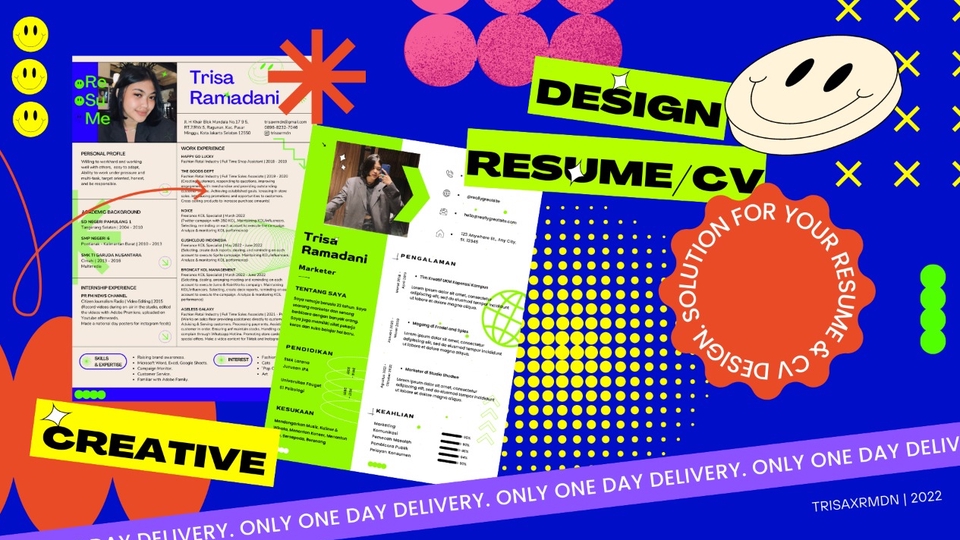 Menerima design Resume/design CV dengan creative simple design, dan harga yang terjangkau, cepat, dan mudah. Design Resume/CV (1 Hari) jadi dengan format JPG/PNG dan PDF. Design kualitas HD dan dapat revisi sampai FIX JADI. Langkah Pekerjaan 1. Chat terlebih dahulu 2. Pilih design yang diinginkan 3. Kirim file-file yang diperlukan 4. Siapkan foto pribadi dengan kualitas HIGH 5. Revisi jika diperlukan