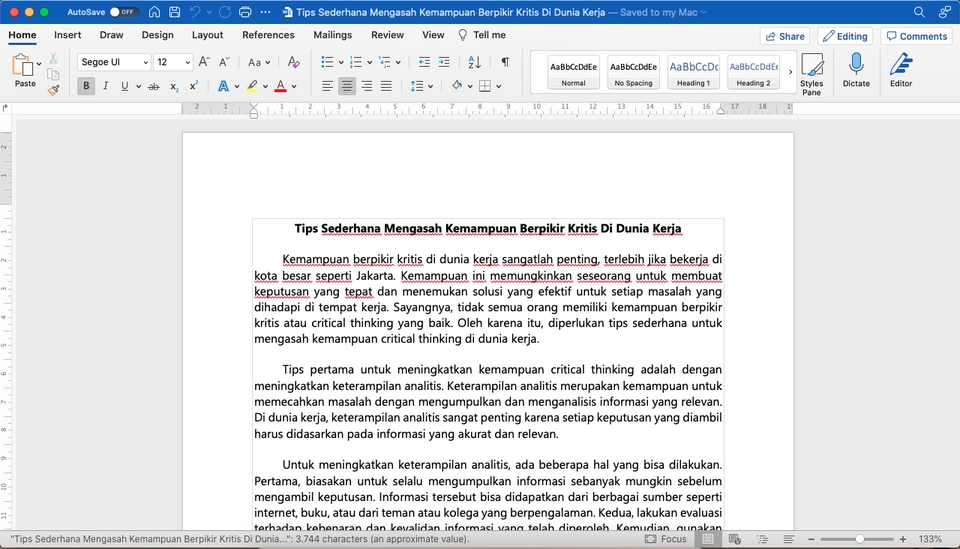 Butuh artikel yang ramah SEO untuk meningkatkan peringkat website Anda di mesin pencari? Kami menawarkan jasa pembuatan artikel SEO berkualitas dengan tarif terjangkau hanya 50 ribu rupiah per artikel dengan panjang 500-700 kata. Kami memiliki tim penulis yang ahli dalam menulis konten yang ramah SEO dan berfokus pada kata kunci yang relevan untuk bisnis Anda. Dengan penggunaan teknik SEO terbaru dan pengetahuan yang mendalam tentang perilaku pengguna internet, kami dapat membantu meningkatkan visibilitas website Anda di mesin pencari. Kami juga menjamin bahwa artikel yang kami buat adalah unik dan tidak plagiarisme. Selain itu, kami juga menawarkan layanan revisi gratis untuk memastikan bahwa artikel yang kami buat sepenuhnya memenuhi kebutuhan Anda. Jangan biarkan website Anda terkubur di halaman belakang mesin pencari. Percayakan pembuatan artikel SEO Anda kepada kami dan saksikan peringkat website Anda meningkat dengan cepat! Hubungi kami sekarang untuk mendapatkan penawaran menarik. Langkah Pekerjaan 1. Tentukan Topik 2. Tentukan Target Keyword 3. Penulisan Artikel 4. Revisi (jika diperlukan)