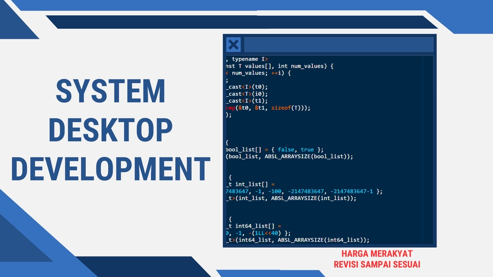 Jasa pembuatan system desktop murah, cocok untuk projek dengan sekala kecil maupun besar. Bisa revisi sampai sesuai dengan keinginan.