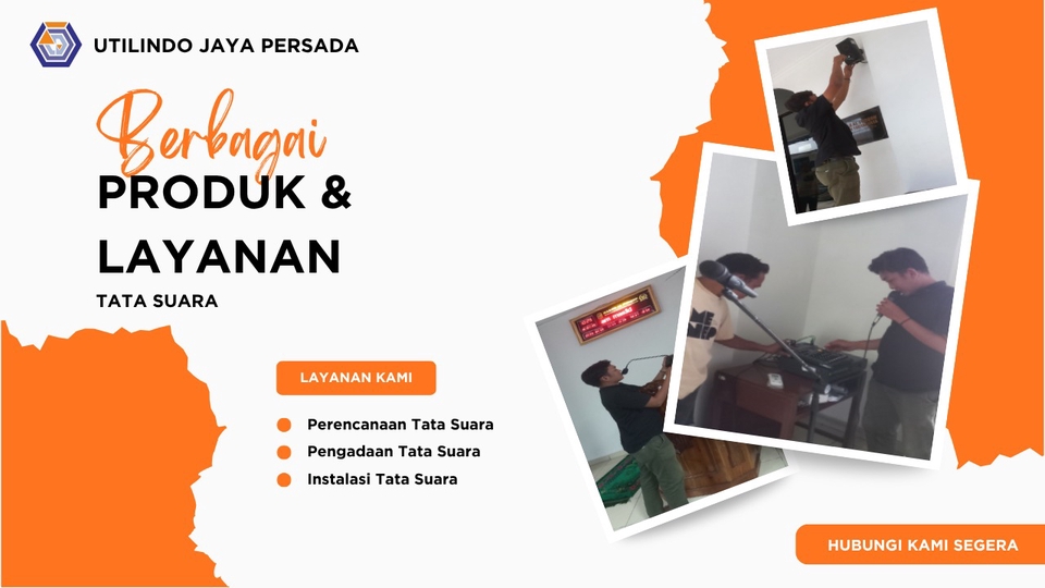 PT. Utilindo Jaya Persada menghadirkan solusi sistem Tata Suara (Public Address, sound system ruangan) profesional untuk gedung, kantor, dan fasilitas Anda, meliputi Pengadaan perangkat audio berkualitas (speaker, amplifier, mixer, dll.), Instalasi sistem akustik yang terencana untuk kualitas suara optimal, serta Perawatan berkala untuk memastikan keandalan sistem komunikasi dan entertainment; percayakan kebutuhan tata suara Anda pada tim ahli kami dan hubungi kami segera untuk konsultasi