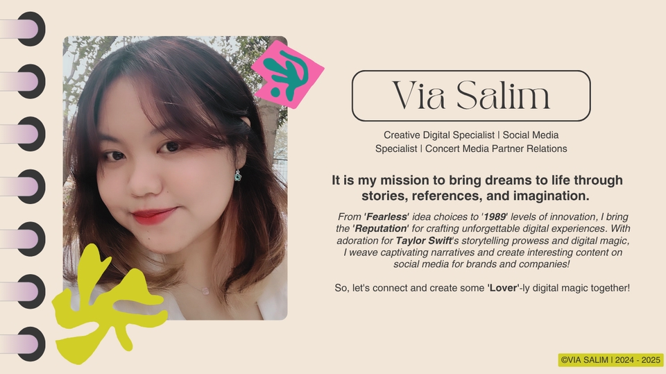 From 'Fearless' idea choices to '1989' levels of innovation, Ibring the 'Reputation' for crafting unforgettable digital experiences. With adoration for Taylor Swift's storytelling prowess and digital magic, I weave captivating narratives and create interesting content on social media for brands and companies! So, let's connect and create some 'Lover'-ly digital magic together!