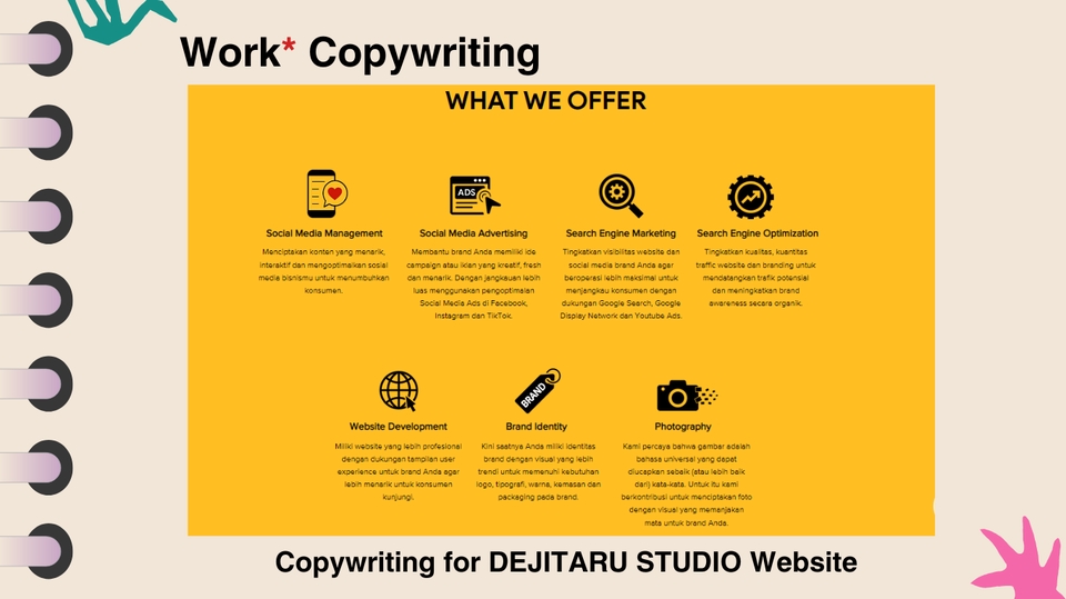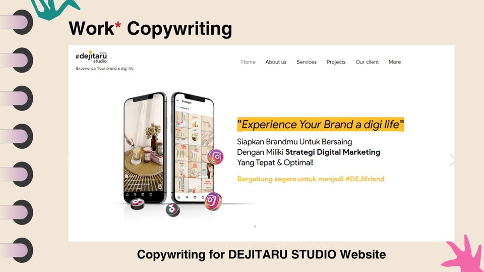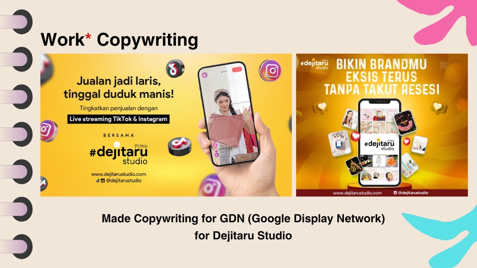 - • Desain for feed, story, reels, carousel, TikTok, and Shorts