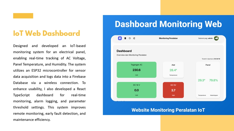 Halo, saya adalah Freelancer profesional di bidang IoT & Robotika. Menyediakan layanan Prototyping IoT, Embedded System, Mechatronics, dan Web Dashboard IoT. Siap bantu wujudkan proyek Anda dari konsep hingga implementasi. Silakan hubungi apabila ada pertanyaan untuk diskusi lebih lanjut. Terima kasih!